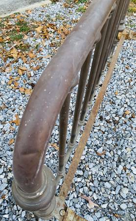 Full-sized brass bed frame with cast iron junctions. Original patina will help achieve the preserved look, or could be polished to bring out the richness of the brass. Delivery negotiable as needed...