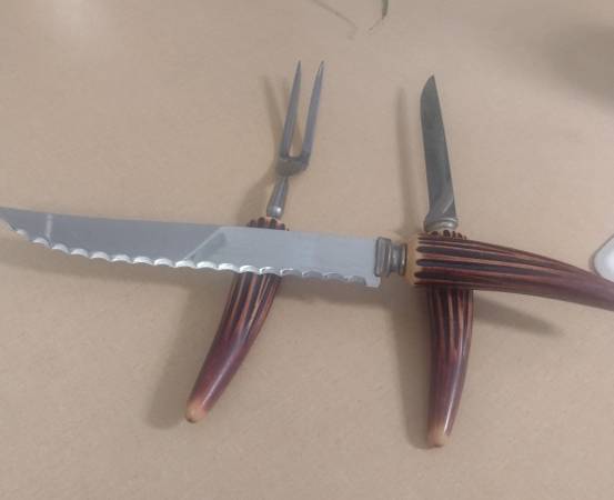 Vintage Regent Sheffield Wavecrest Knife and Fork Set, Bone Style Horn Handles, Stainless Steel Set of 3
