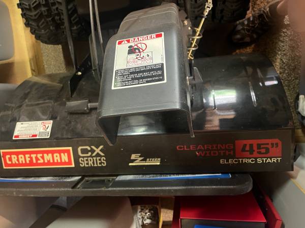 Craftsman CX Series Snow blower, electric start, 45" intake, 420 CC, dual wheels, heated handle controls and enclosure. Call number, emails are not monitored by owner