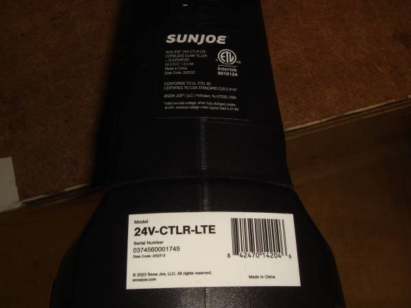 SUNJOE 24 Volt Cordless Claw Garden Tiller - in like-new condition. Used less than an hour last fall, then put away for the winter.