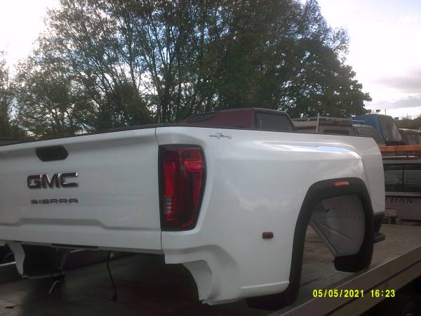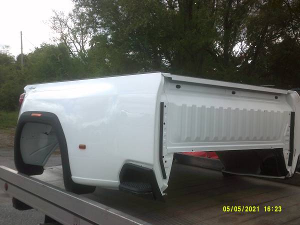 For sale is a 2021 GMC dually truck bed . This bed is white , and 8ft long . The price is $2895.00 . Call today for more information ! We have a large selection of used truck accessories in stock , including truck caps , ladder racks , tool boxes , and snow plows .