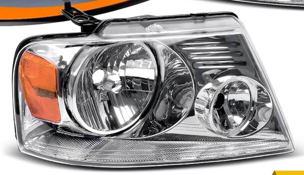 2004-2008 Ford F150 Headlights Assembly Chrome Housing Amber Reflector yellowed a little (should be cleaned) $25.00