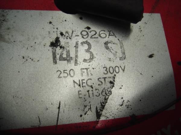 Sixty-eight feet of Carol Cable Co. 14/3 Type SJ rubber electrical wire / cord.