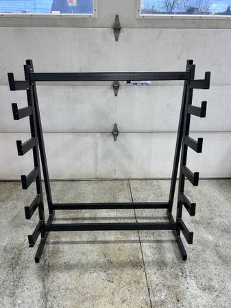 Made of 2" x1" 14 gauge steel - 41" wide x 22" deep x 50" high Very sturdy, will hold a lot of weight.